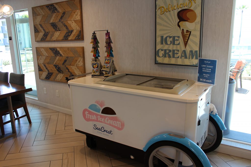 There are panoramic ocean views from each of the four ocean terraces. Enjoy getting into a heated pool or one of the three cliffside hot tubs. Then, fire up the gas BBQ for a sunset dinner. If you brought the kids, then enjoy some fun lawn games like ‘cornhole.’ And, grab some fresh Gelato ice cream or ice cream sandwiches inside the hotel lobby. There are freshly baked cookies daily from 3-7p.m.! If you’re really hungry, try Blast and Brew American Eatery Taphouse located in front of the hotel. If you don’t want to leave the pool, order a poolside delivery.